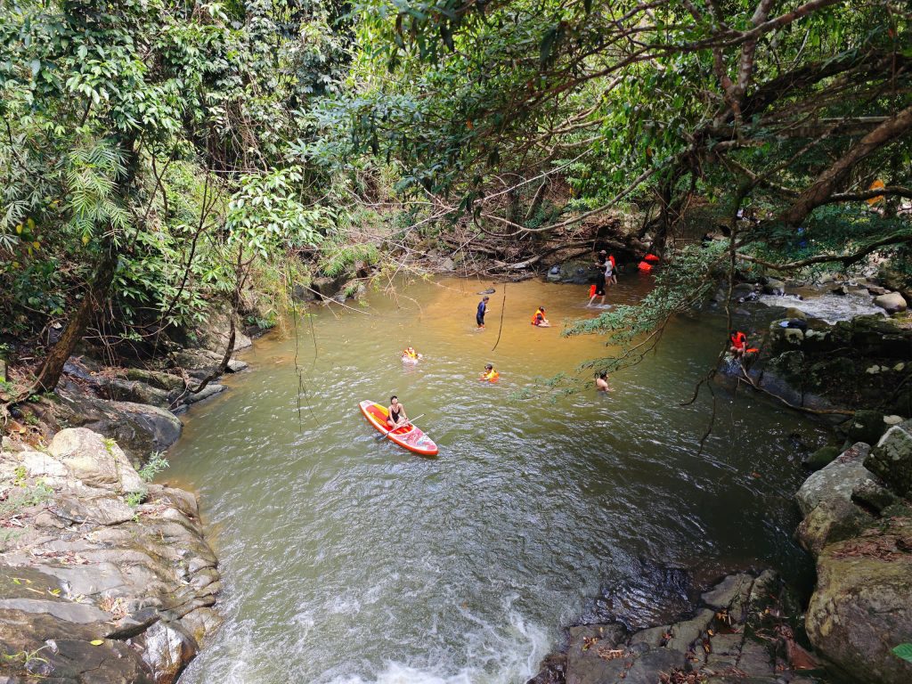 Đây là cung trekking 7km được đánh giá “vừa sức nhưng đầy trải nghiệm” – bạn được đi, được tắm thác, được ăn bữa trưa picnic giữa rừng.